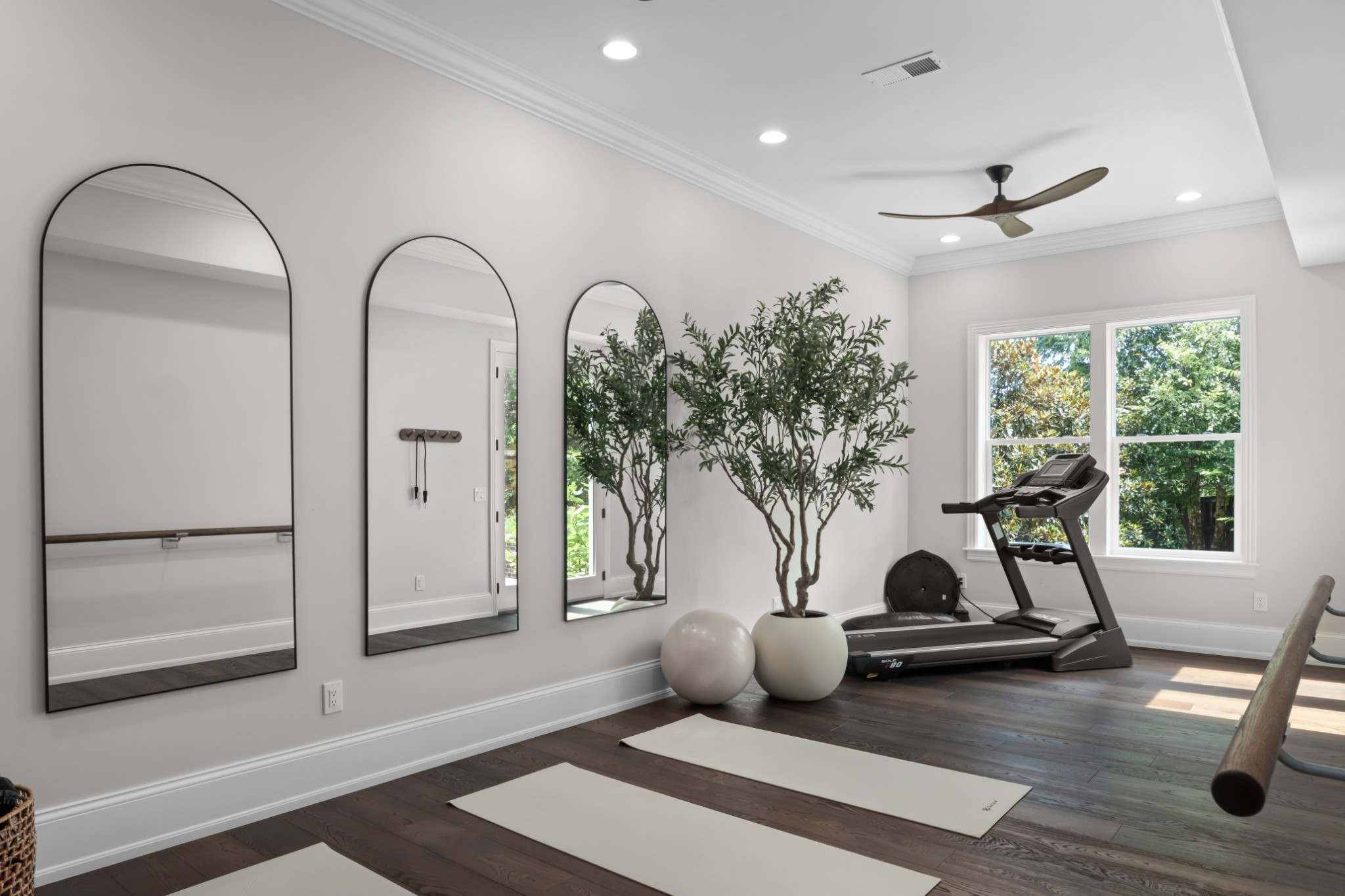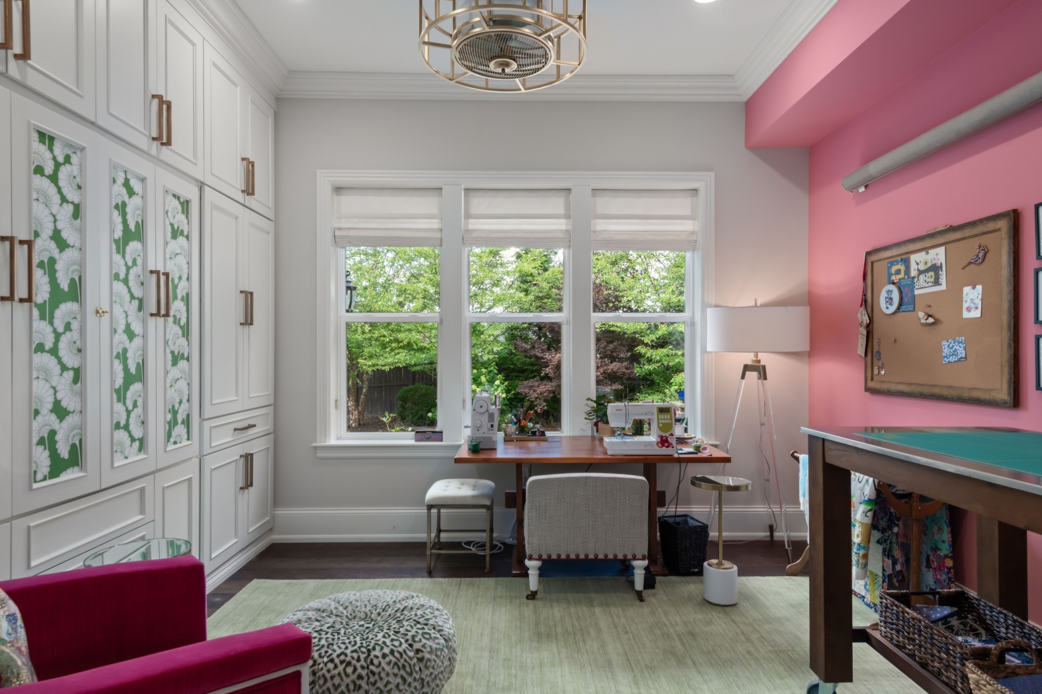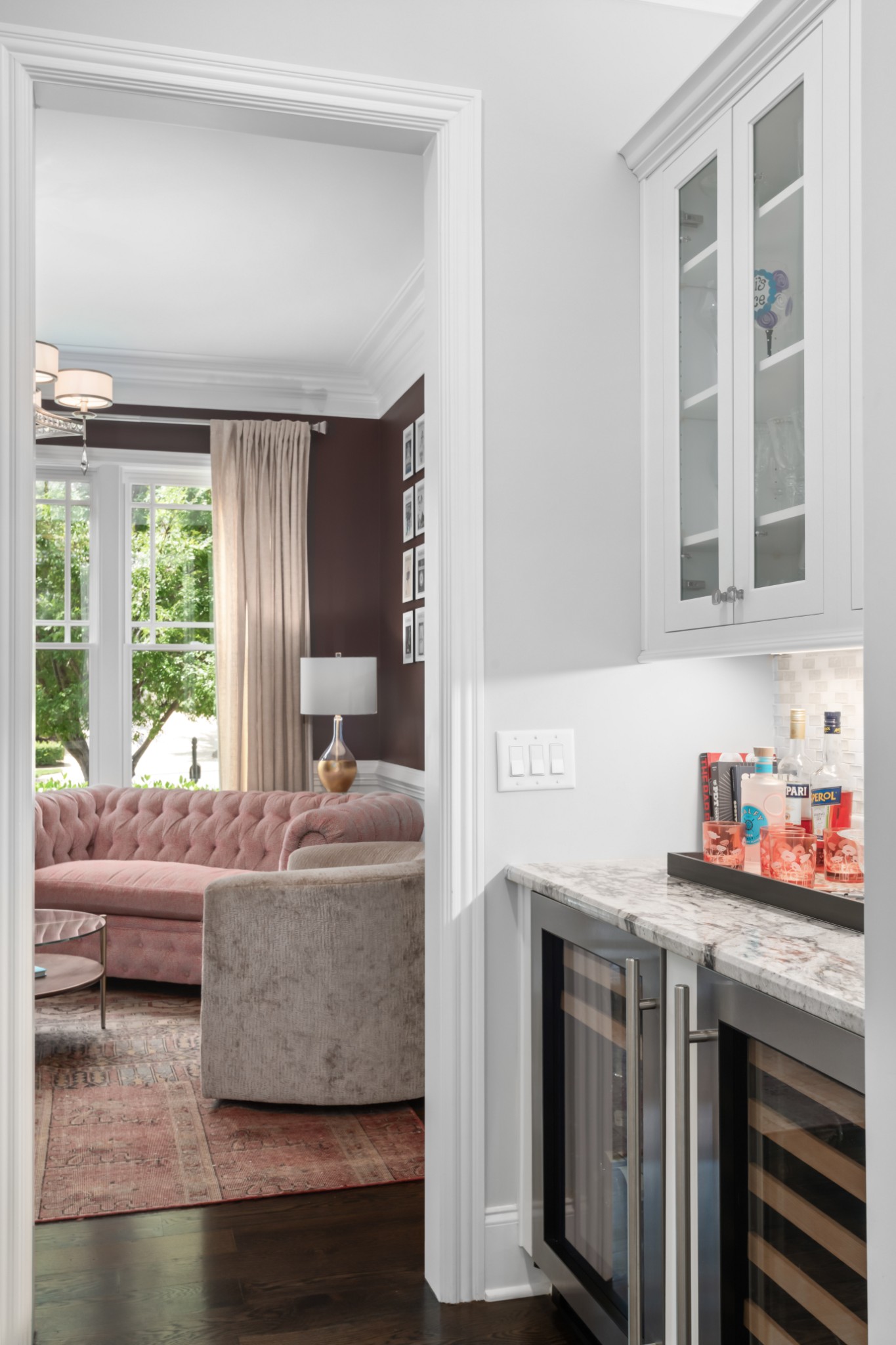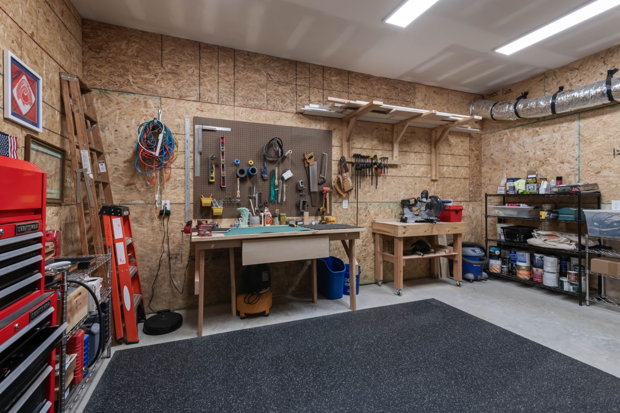 The show-stopping ground level renovation (2022) features a temperature-controlled wine cellar, expansive entertainment area with full kitchen/bar, versatile hobby room or 5th bedroom, zen fitness studio, and an additional 550 sq. ft. of workshop space and storage room (not included in total square footage).