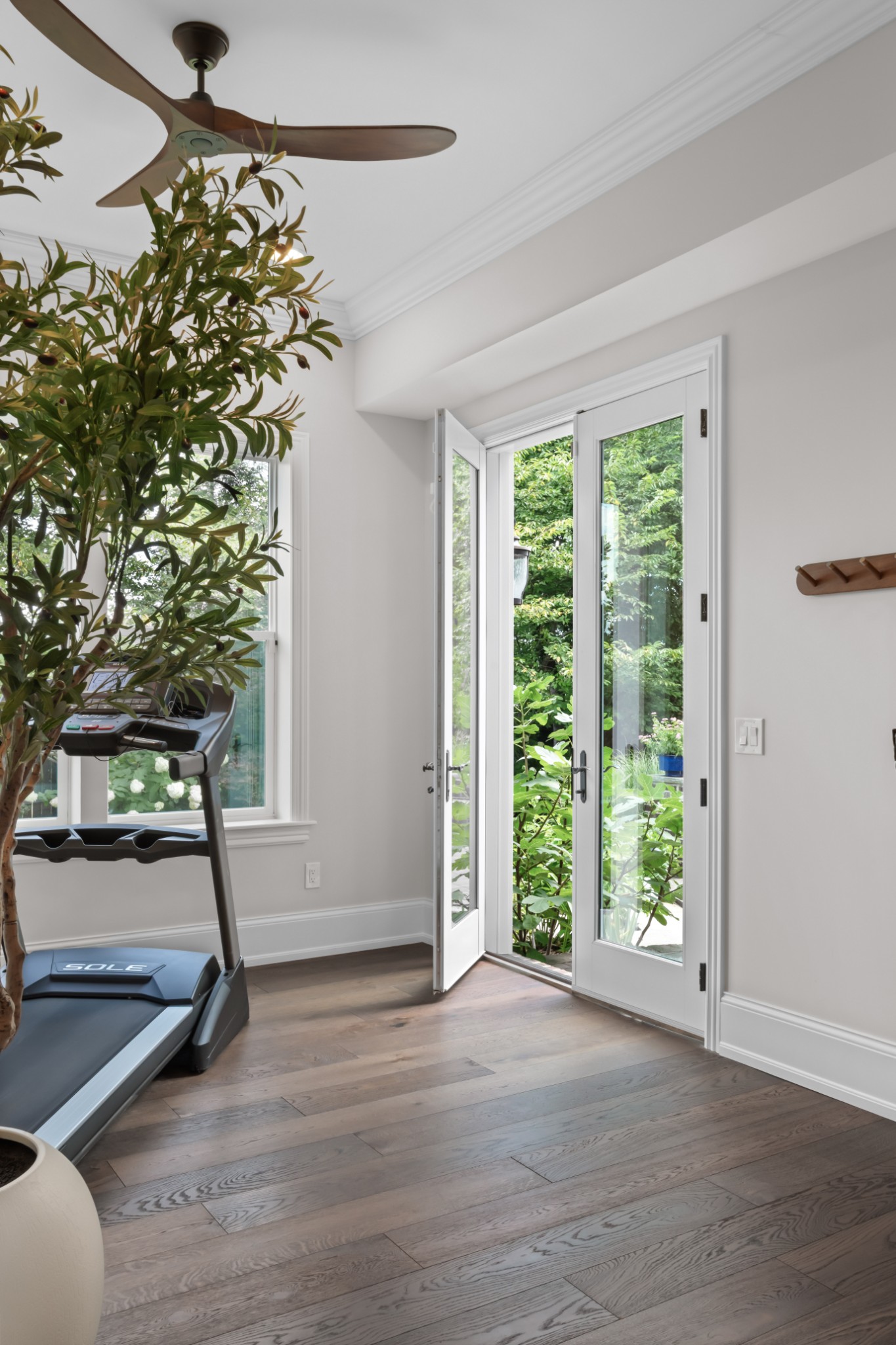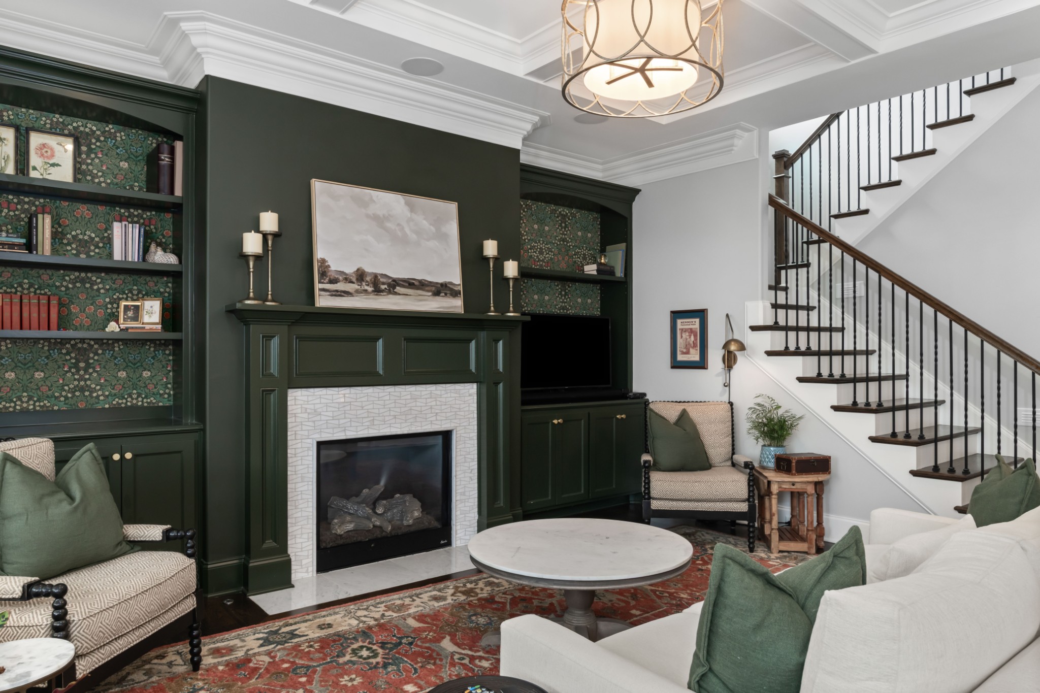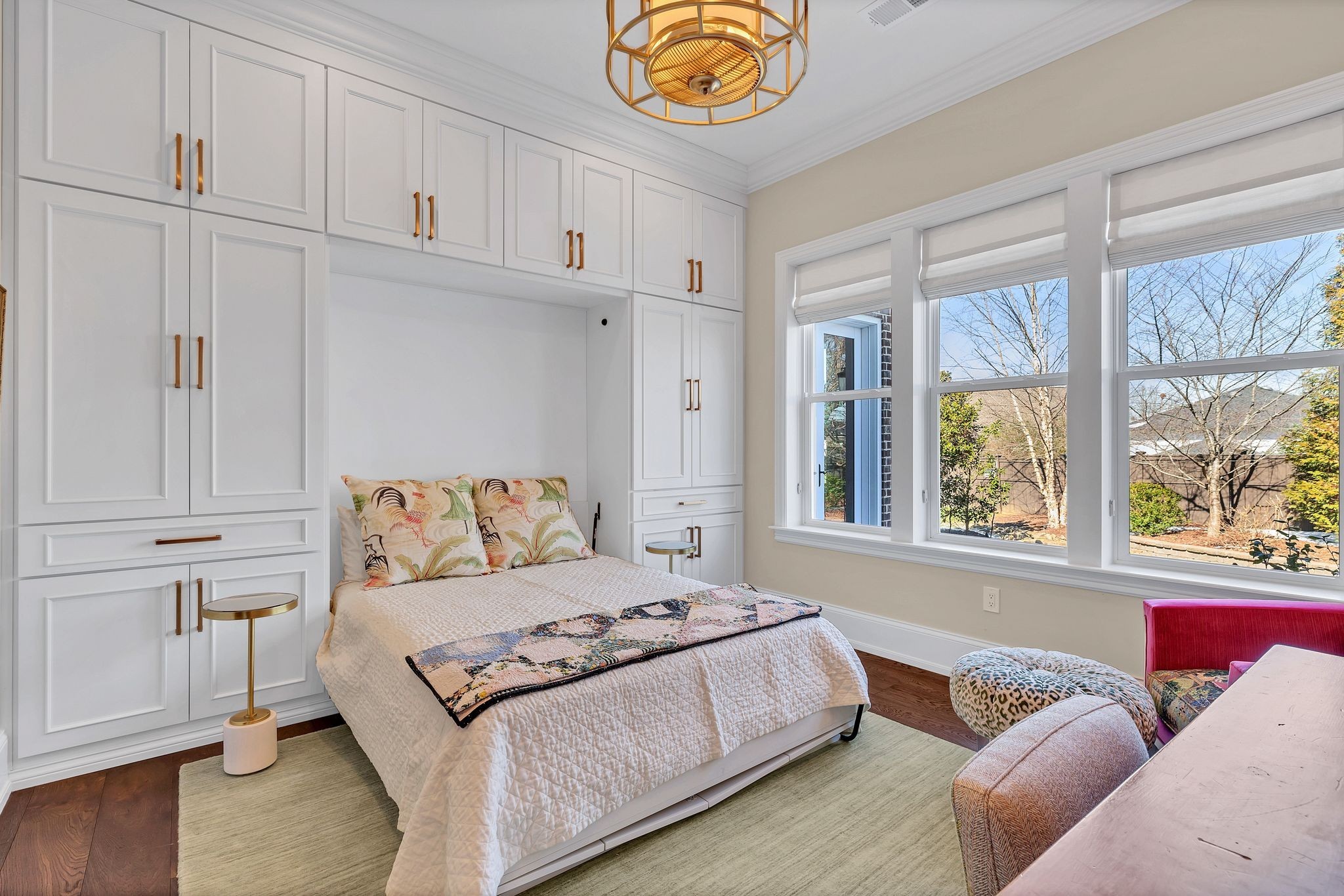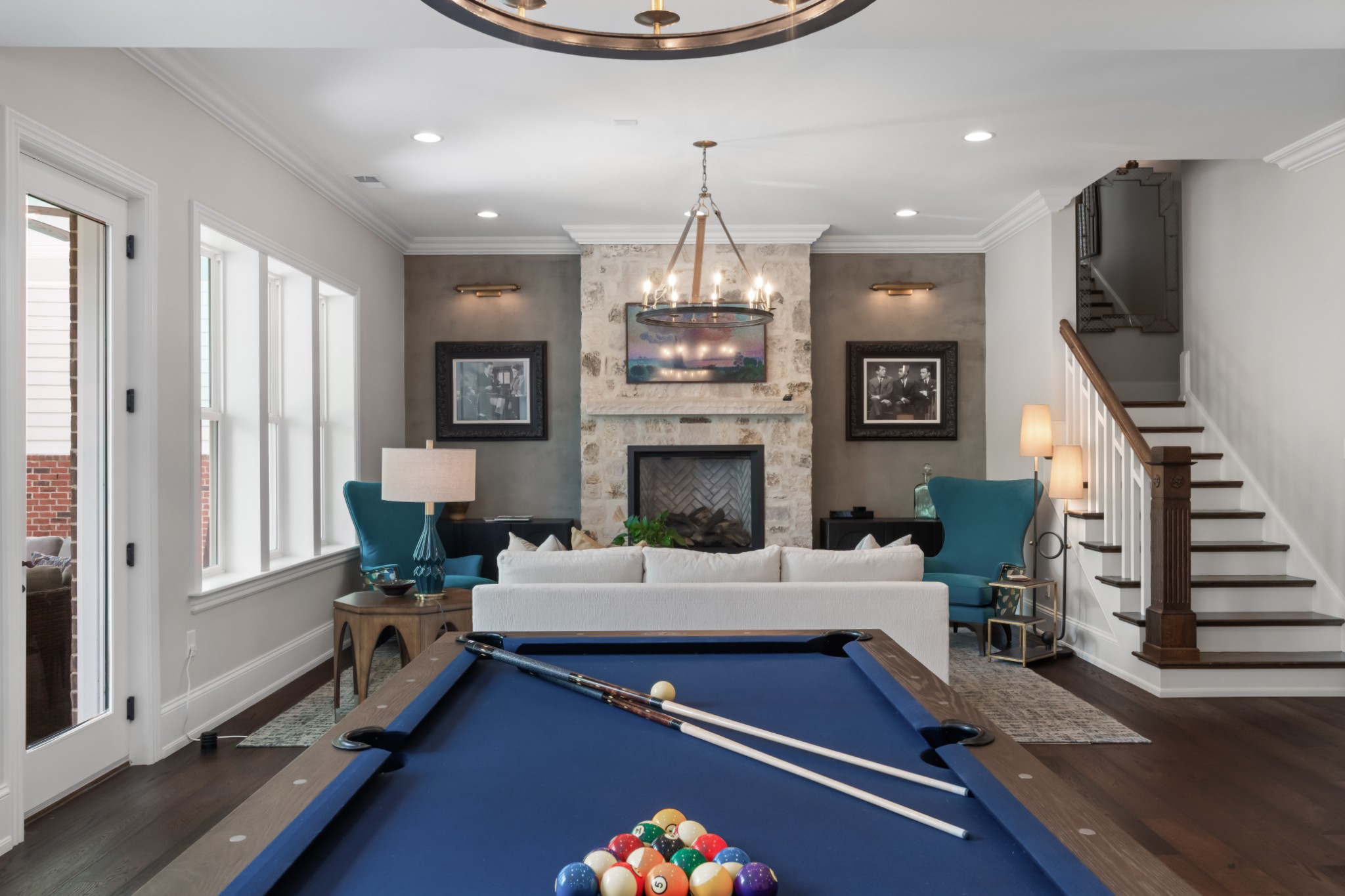 The show-stopping ground level renovation (2022) features a temperature-controlled wine cellar, expansive entertainment area with full kitchen/bar, versatile hobby room or 5th bedroom, zen fitness studio, and an additional 550 sq. ft. of workshop space and storage room (not included in total square footage).