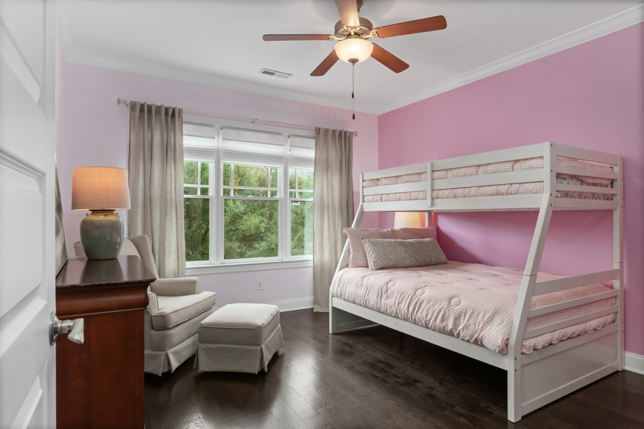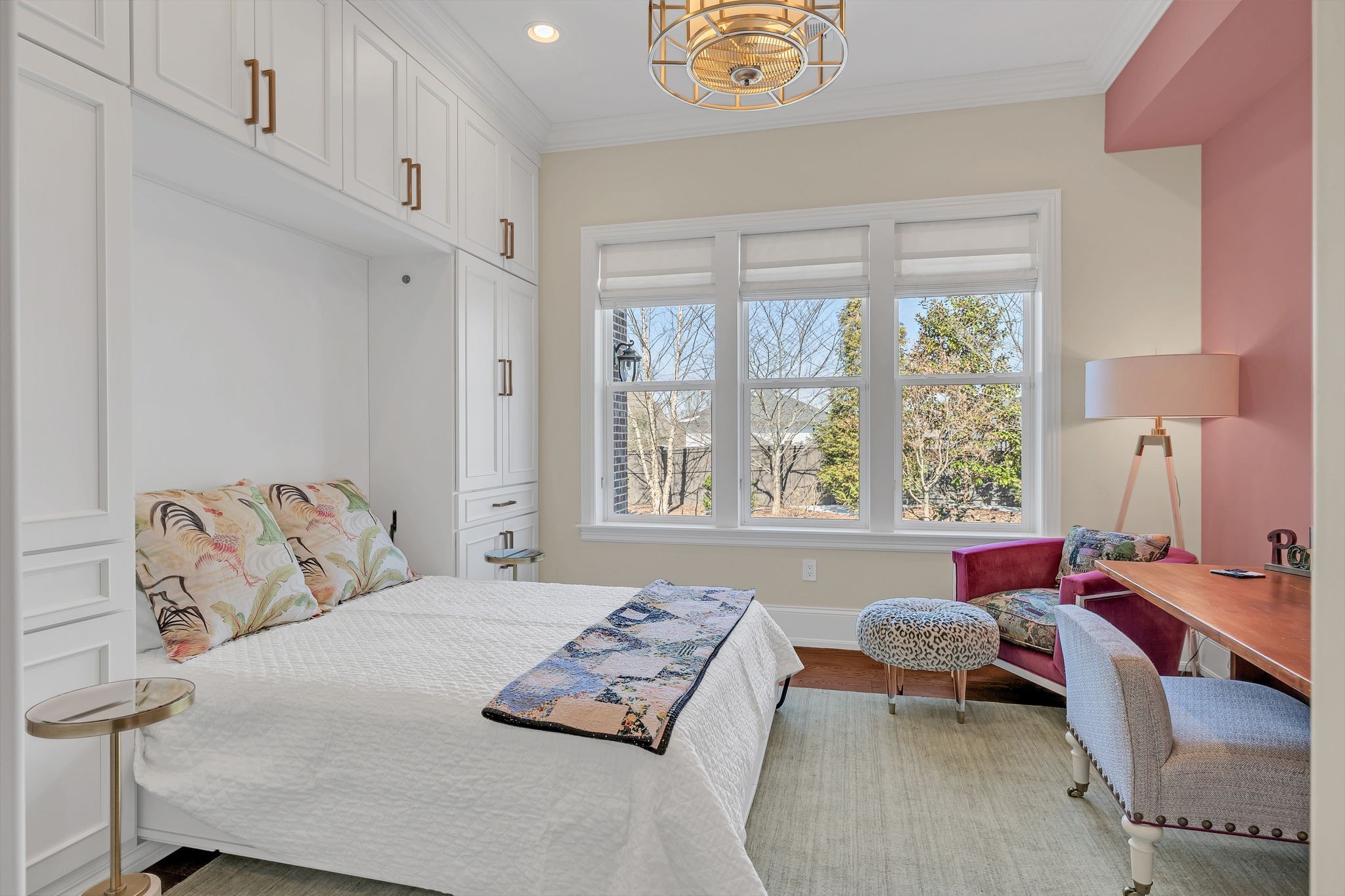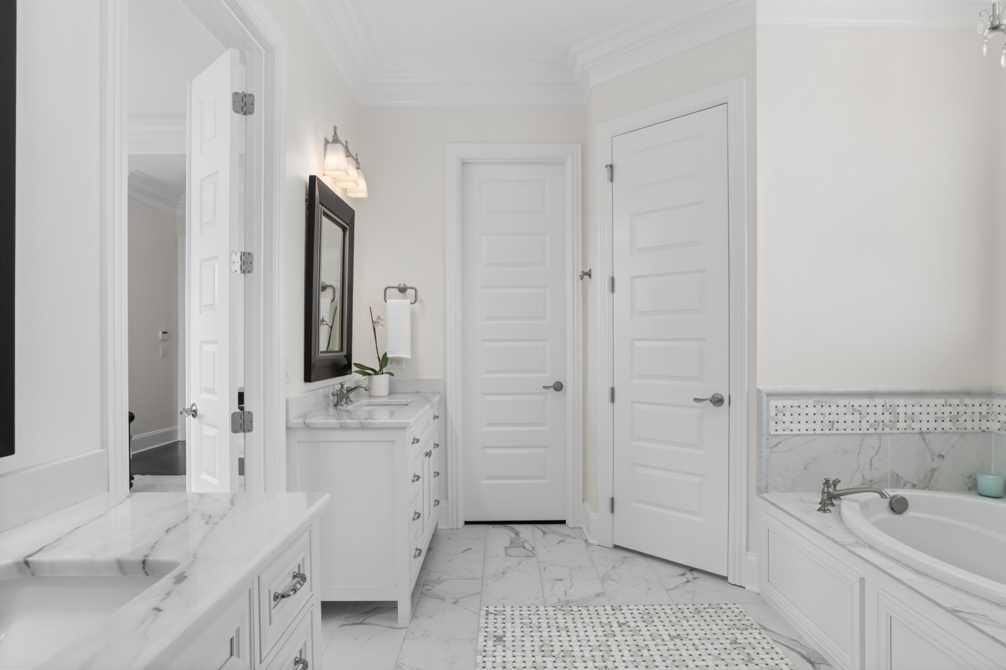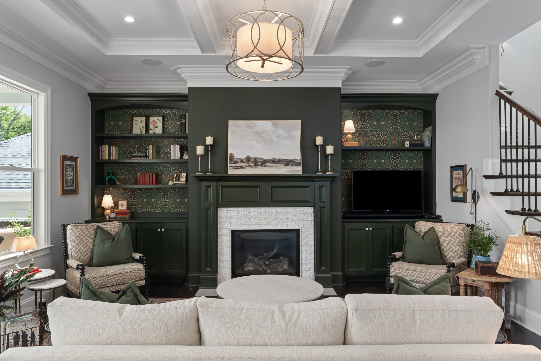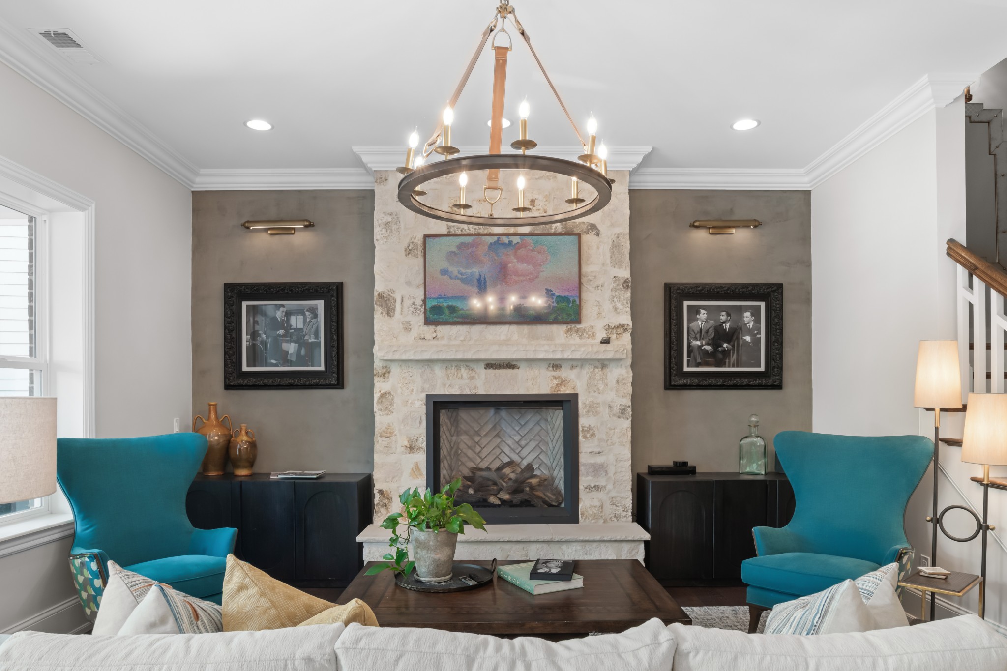 The home's first level offers thoughtfully appointed living and dining areas, a keeping room, an open chef's kitchen with Thermador appliances, and a light-filled primary suite with soaking tub and dual closets. The second level features an airy living room, an executive's office, and three ensuite bedrooms.