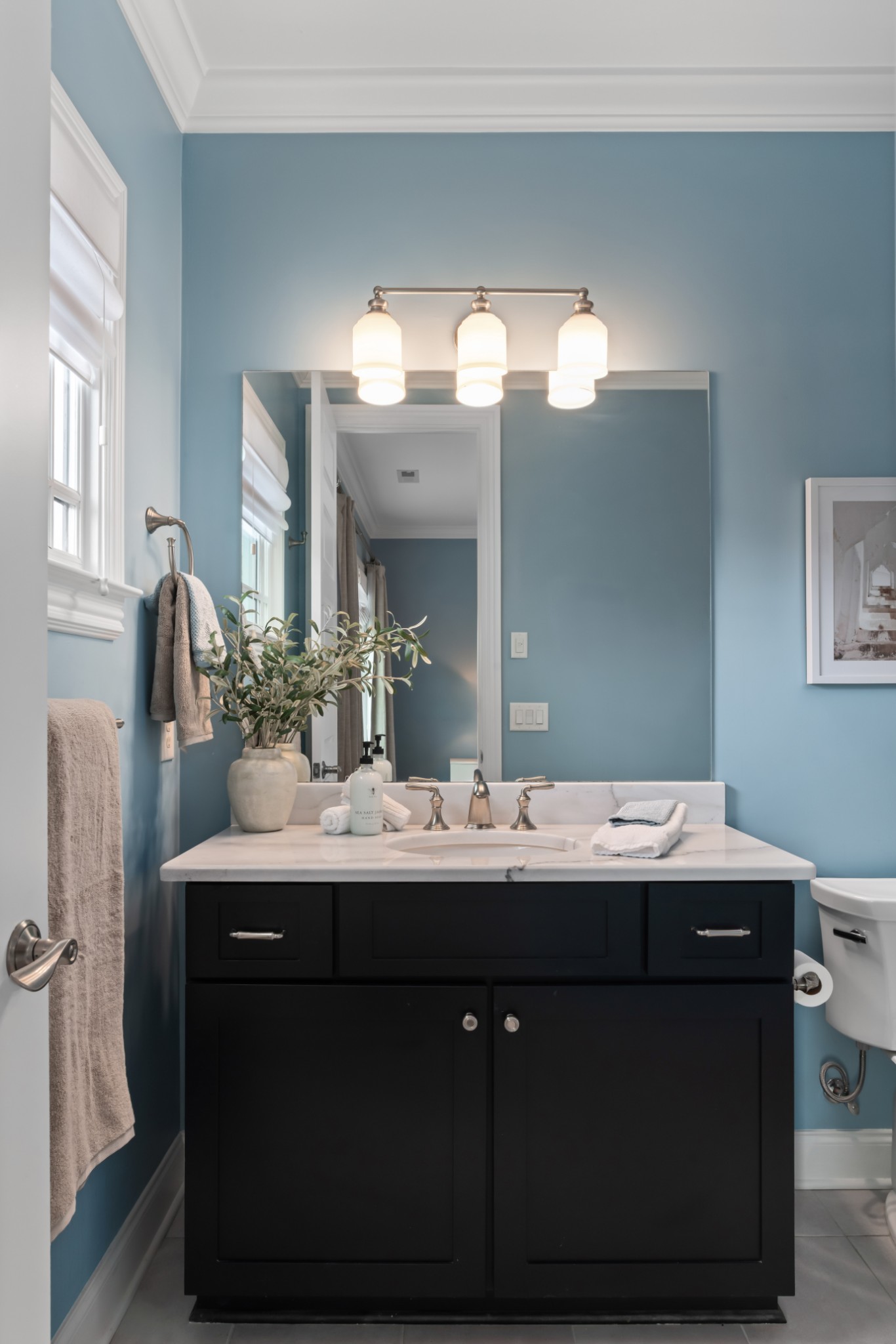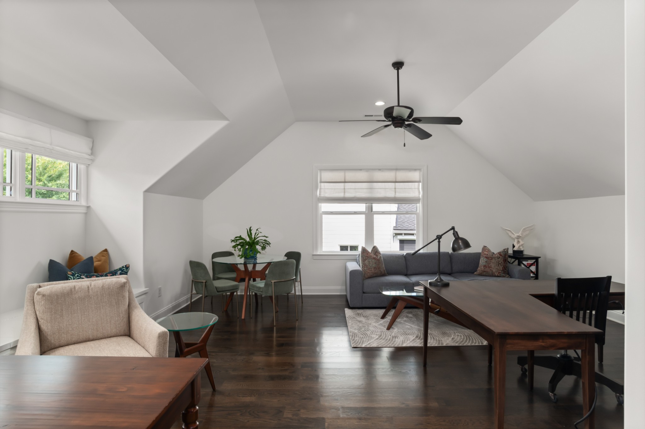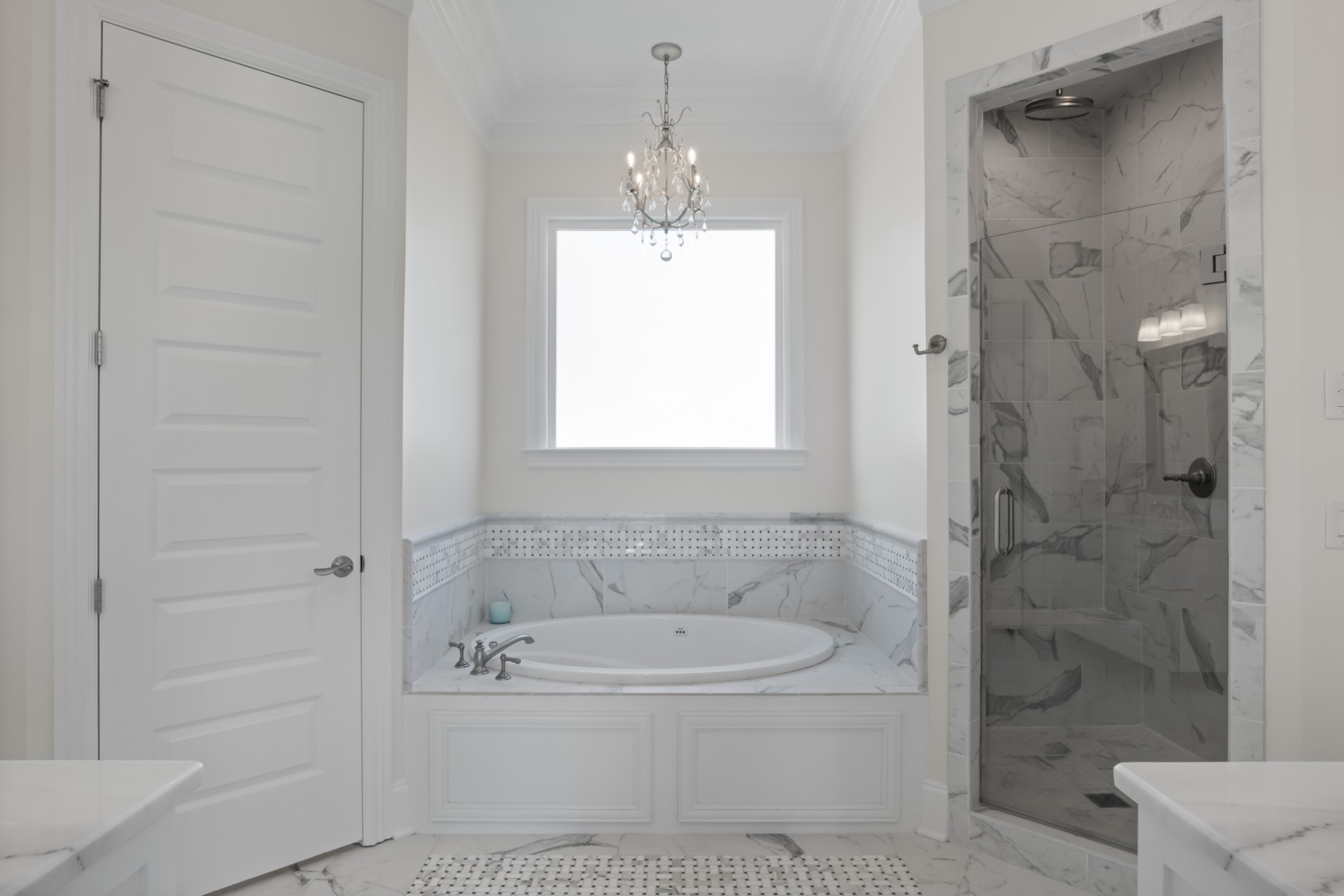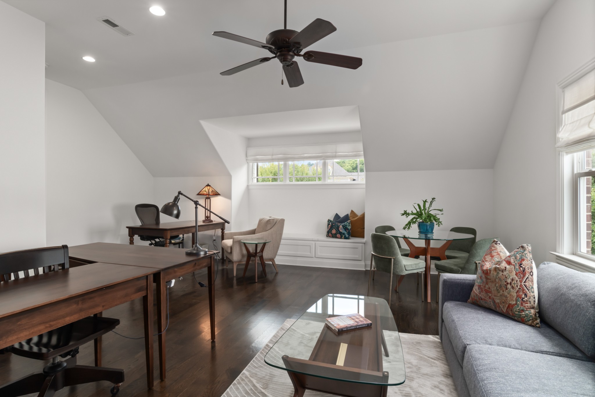 The home's first level offers thoughtfully appointed living and dining areas, a keeping room, an open chef's kitchen with Thermador appliances, and a light-filled primary suite with soaking tub and dual closets. The second level features an airy living room, an executive's office, and three ensuite bedrooms.