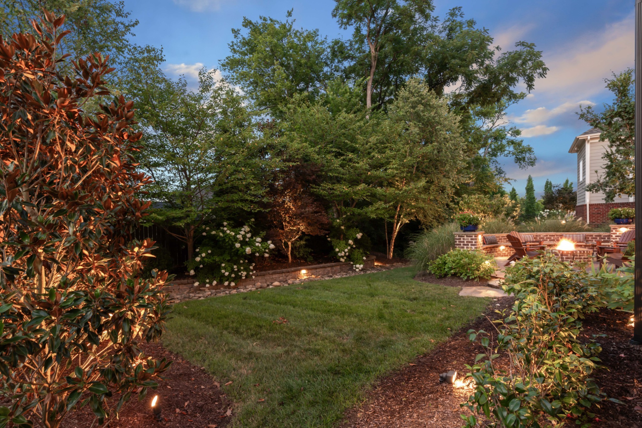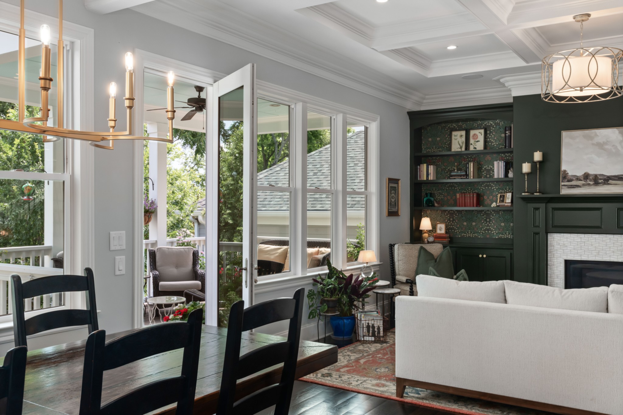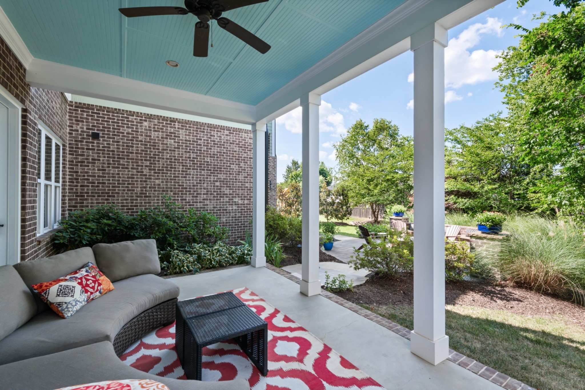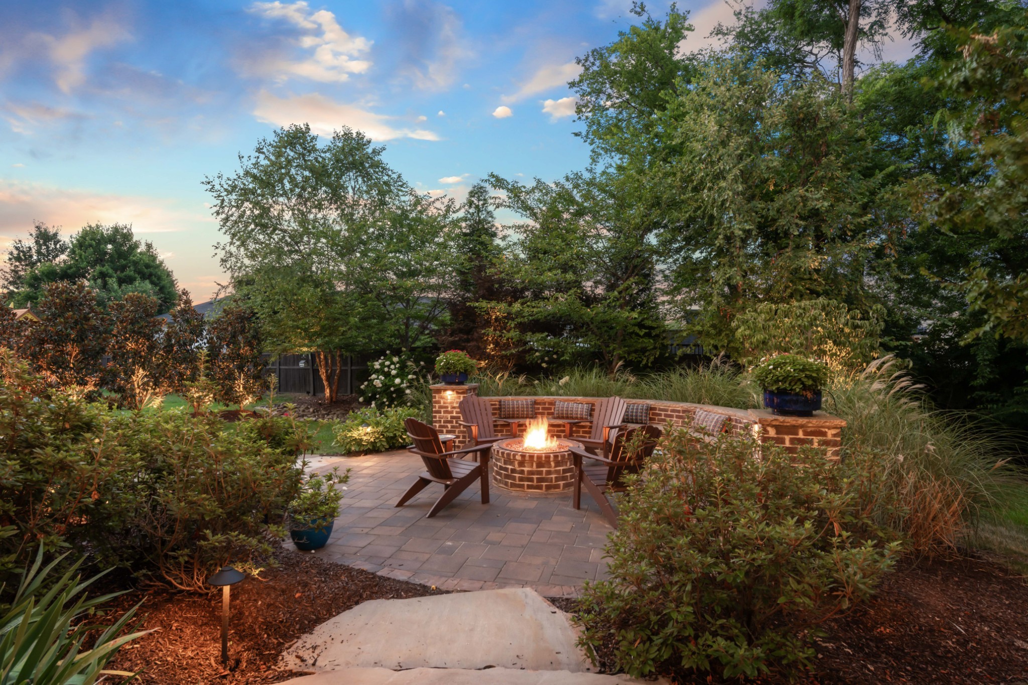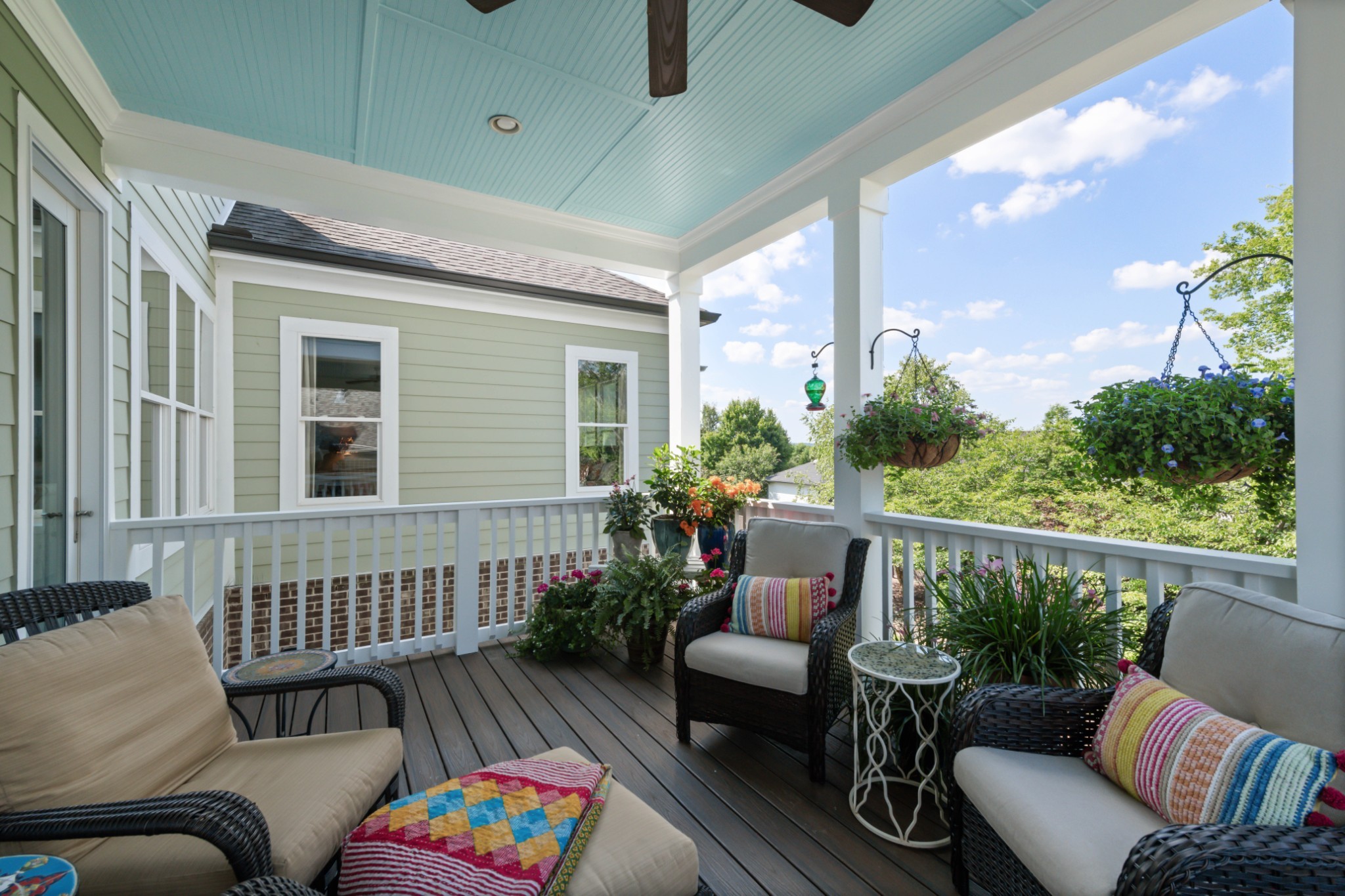 Each of the three floors opens to a fabulous covered outdoor living space. From the top floor balcony, take in sunsets and sweeping rolling hill vistas and fireworks displays. On the main floor, savor a book and coffee on the balcony adjoining the living and dining room. On the ground floor, host indoor-outdoor parties with a fabulous patio, or enjoy privacy by the custom backyard firepit surrounded by lush landscaping. Or, enjoy rocking on the traditional front porch.