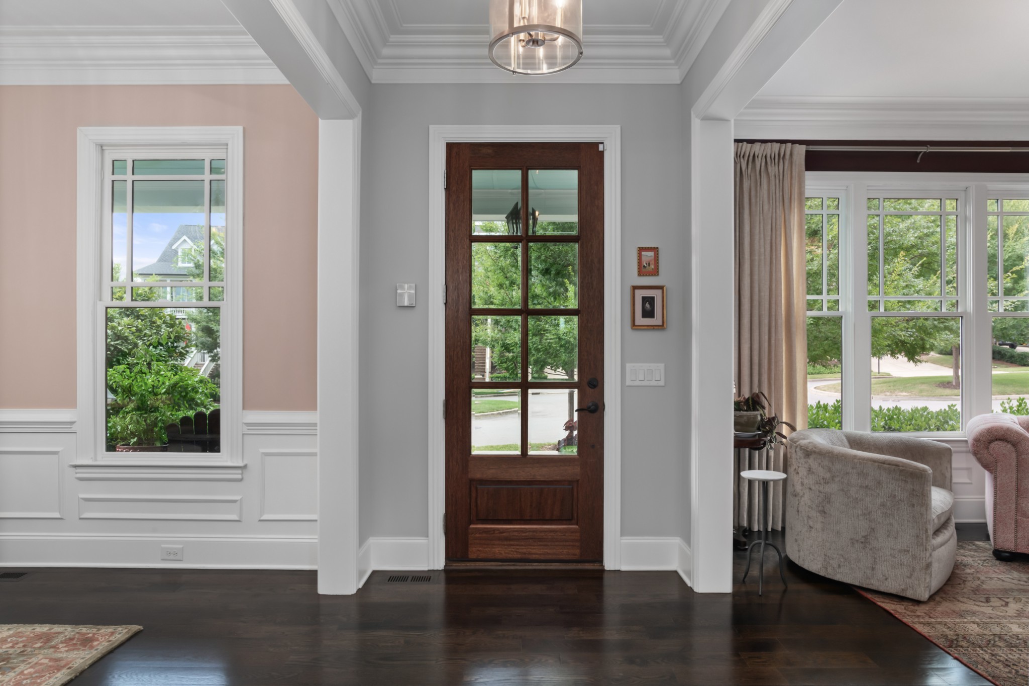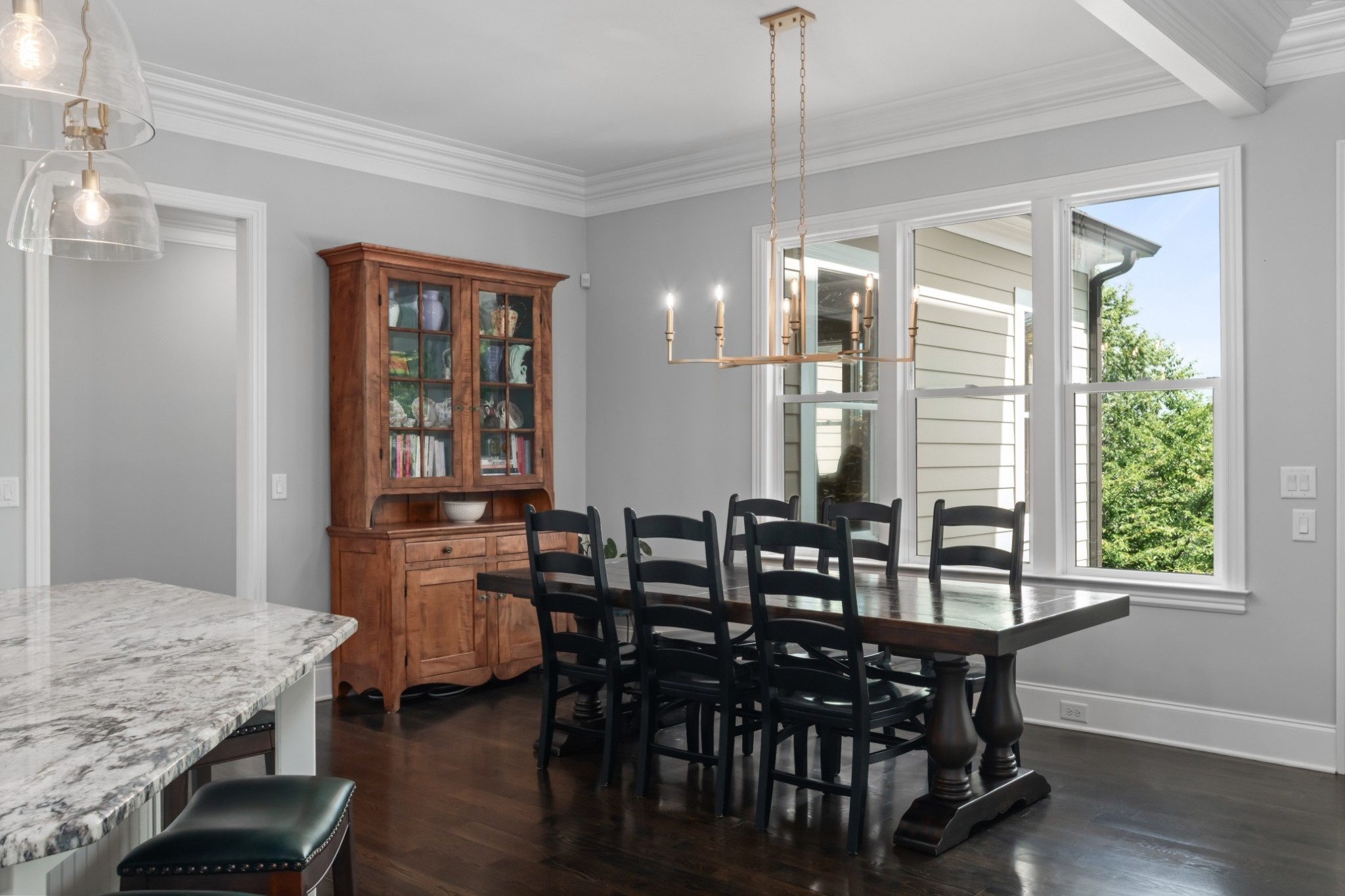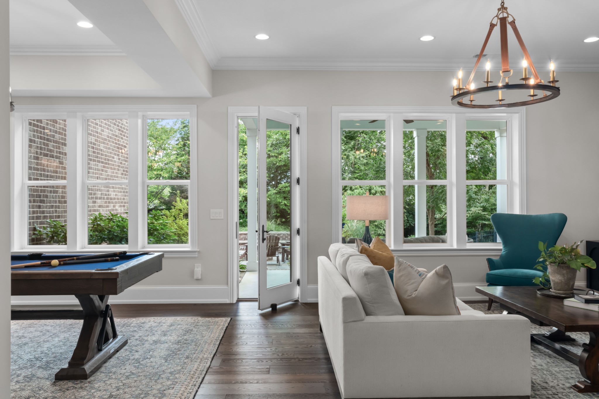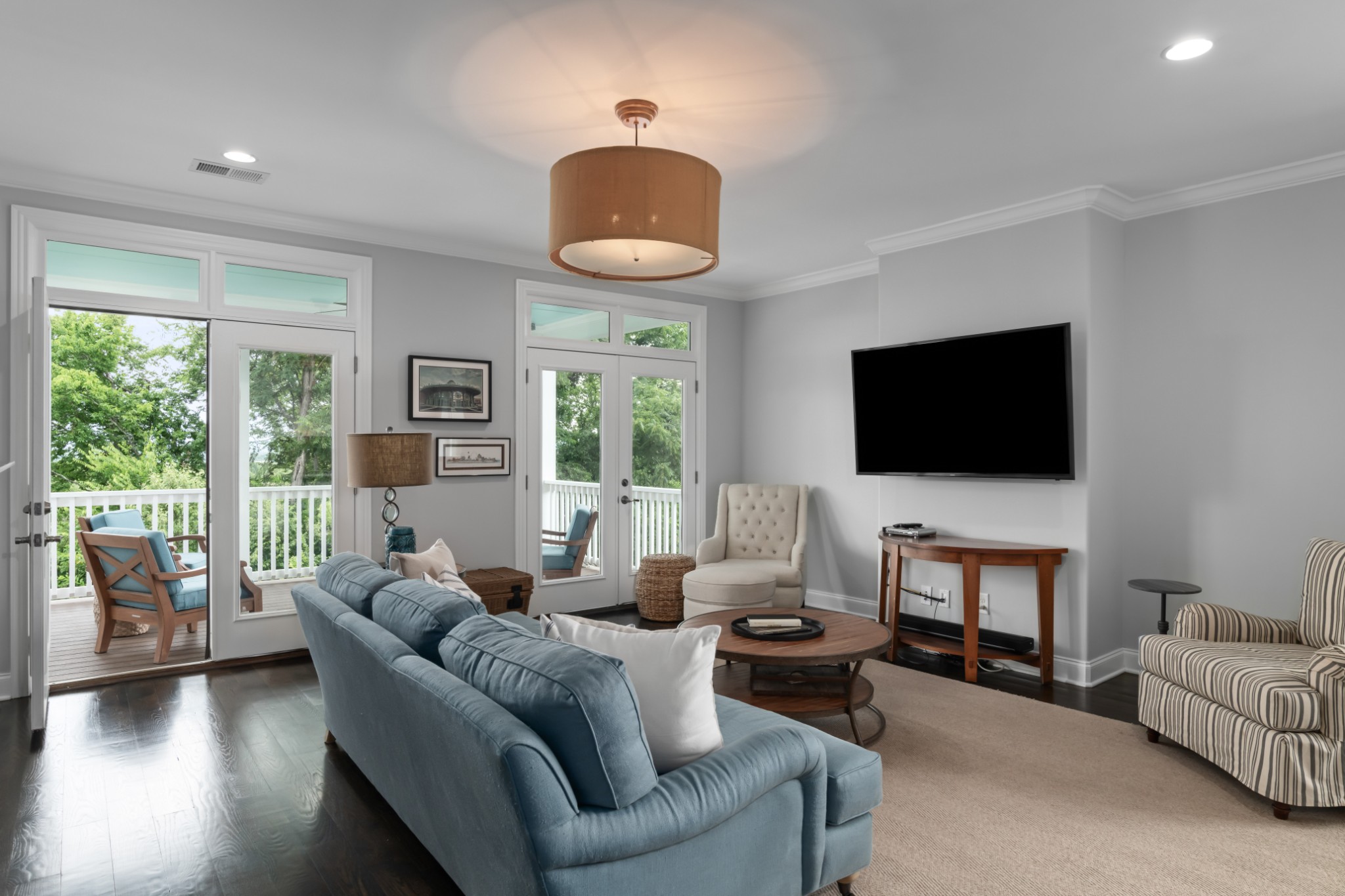 Each of the three floors opens to a fabulous covered outdoor living space. From the top floor balcony, take in sunsets and sweeping rolling hill vistas and fireworks displays. On the main floor, savor a book and coffee on the balcony adjoining the living and dining room. On the ground floor, host indoor-outdoor parties with a fabulous patio, or enjoy privacy by the custom backyard firepit surrounded by lush landscaping. Or, enjoy rocking on the traditional front porch.