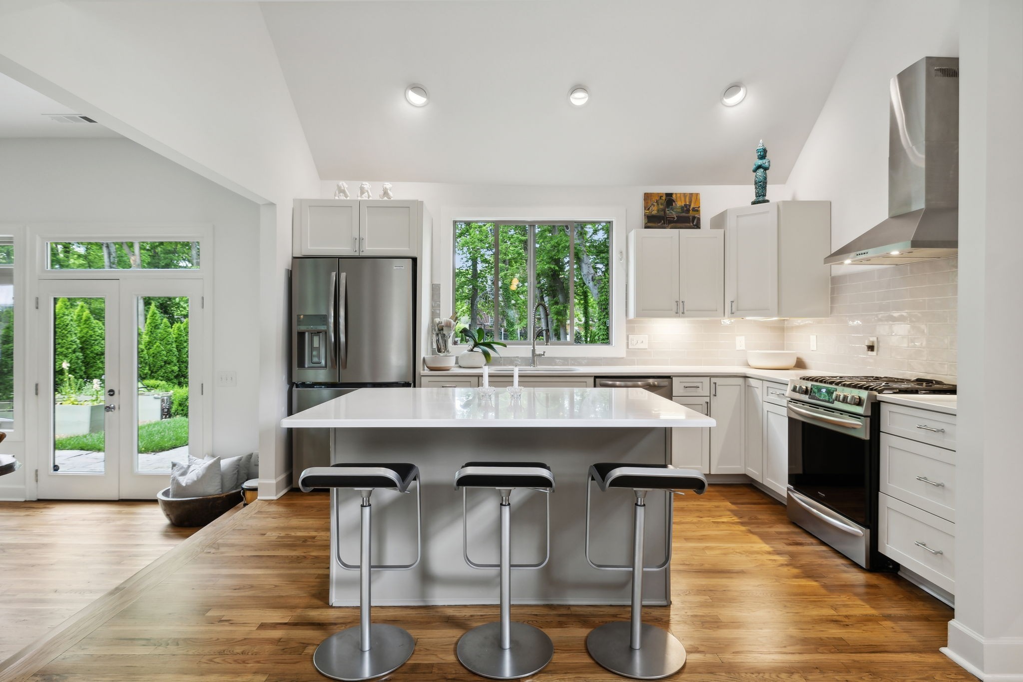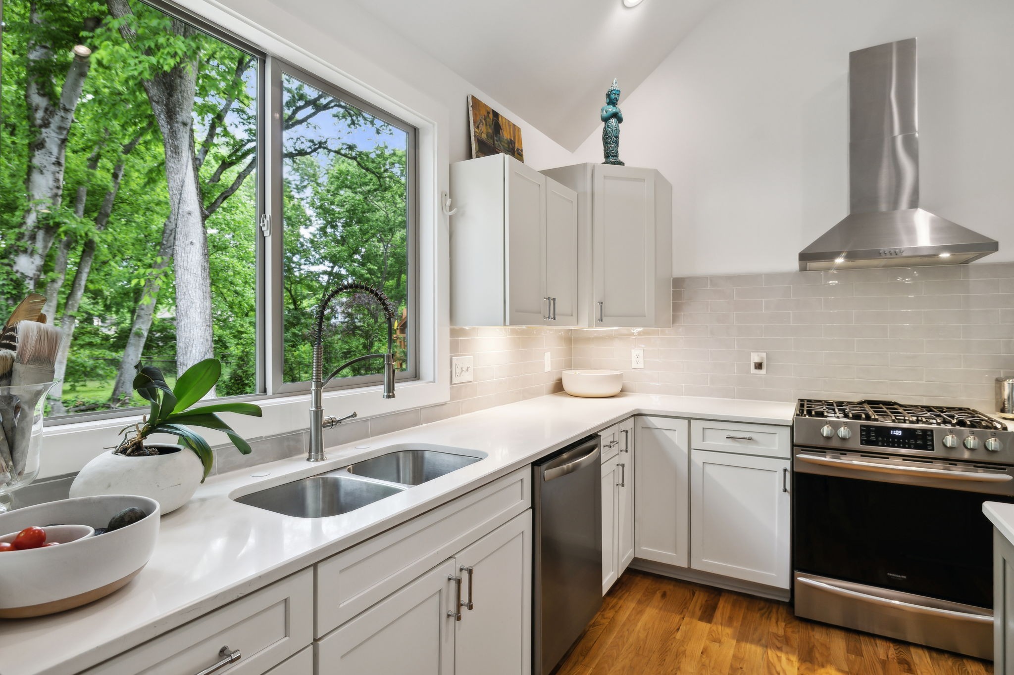 A serene oasis in the heart of Green Hills, thoughtfully and meticulously reimagined both inside and out to emphasize peace and tranquility. This home features beautifully refinished hardwood floors and a sleek Scandinavian fireplace, complemented by an open kitchen perfect for seamless living and entertaining. Recent upgrades include a comprehensive home water purification system and a redesigned driveway that offers ample parking. Outdoors, immerse yourself in a private, zen-inspired haven, surrounded by artfully curated landscaping with uplighting, full irrigation, and enclosed by twin creeks and mature trees. Enjoy a rare sense of calm just moments from the best of Green Hills, Belle Meade, Vanderbilt, and Downtown Nashville. This exceptional property is perfect for discerning buyers who value exquisite attention to detail, functionality, and prime location.